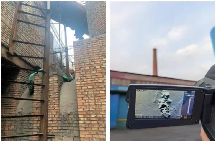 石家莊市河北天意碳素有限公司主要從事石墨電極和煅燒石油焦生產(chǎn),大氣污染物有顆粒物、氮氧化物、二氧化硫等。該公司有7條煅燒生產(chǎn)線,煙道均連接至已廢棄的磚制舊煙囪?,F(xiàn)場(chǎng)檢查時(shí),煅燒2號(hào)、6號(hào)、7號(hào)車間生產(chǎn)線正在生產(chǎn),使用紅外熱成像儀檢測(cè)發(fā)現(xiàn),部分生產(chǎn)廢氣未經(jīng)治理設(shè)施處理,通過已廢棄的磚制舊煙囪直接排放。