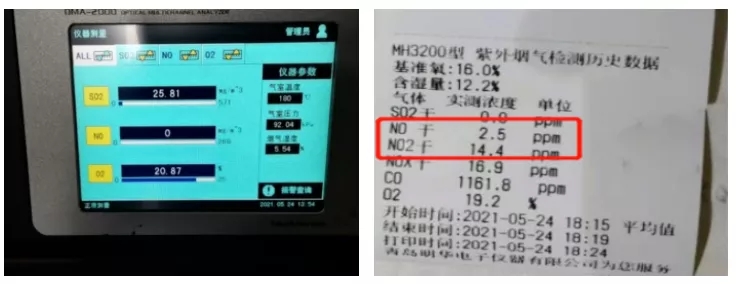 圖5濱州市沾化慶翔金屬材料有限公司燒結(jié)機(jī)頭煙氣自動(dòng)監(jiān)測(cè)數(shù)據(jù)(左),濱州市生態(tài)環(huán)境監(jiān)測(cè)中心實(shí)際監(jiān)測(cè)數(shù)據(jù)(右)