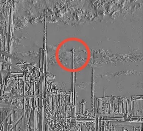 圖7紅外熱成像儀檢測(cè)黃驊市信諾立興精細(xì)化工股份有限公司罐區(qū)部分廢氣未接入焚燒爐裝置,直接排放