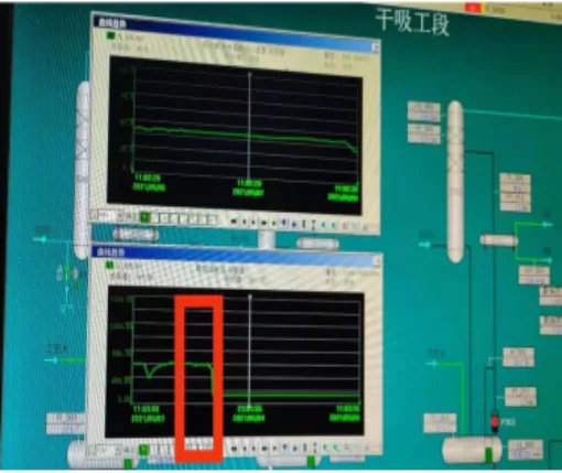 山東威特化工有限公司從事有機(jī)化工生產(chǎn),大氣污染物主要為揮發(fā)性有機(jī)物(VOCs)、二氧化硫、氮氧化物、顆粒物、硫酸霧等?,F(xiàn)場(chǎng)調(diào)閱中控平臺(tái)記錄發(fā)現(xiàn),5月4日-8日企業(yè)正常生產(chǎn),硫酸回收單元尾氣堿液吸收塔液位接近0,堿液吸收塔不正常運(yùn)行,酸性尾氣未經(jīng)處理直接排放。
