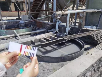 圖10山西博天耐火材料有限公司煅燒回轉(zhuǎn)爐脫硫漿液循環(huán)池內(nèi)的脫硫漿液呈強(qiáng)酸性