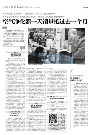 ▼2016年1月20日,《河南商報(bào)》報(bào)道《空氣凈化器一天銷(xiāo)量抵過(guò)去一個(gè)月》